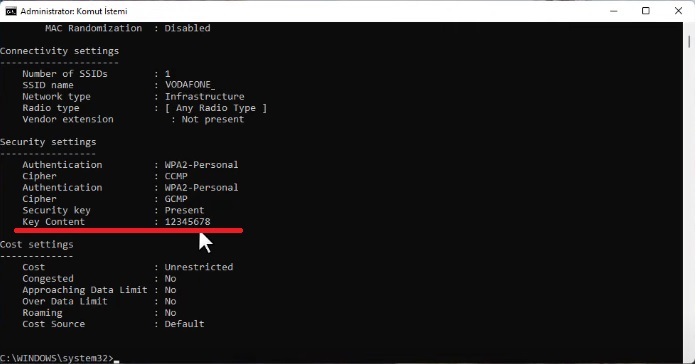 CMD Komut satırı ile Windows 11 Wi-Fi şifresi nasıl öğrenilir?