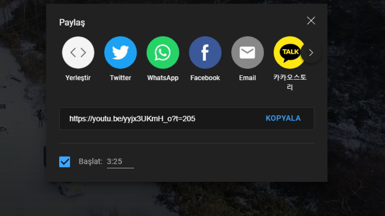 Eğer bir videonun tamamını paylaşmak istemiyorsanız bunun yerine belirli bir saniyeden başlayarak bir özel link oluşturabilirsiniz. Web arayüzünde bir videonun altında Paylaş'ı tıklarsanız , atlamak istediğiniz zamanı girebileceğiniz bir Başlangıç kutusu görürsünüz. Tıklayan kişi videoya o saniyeden başlar.