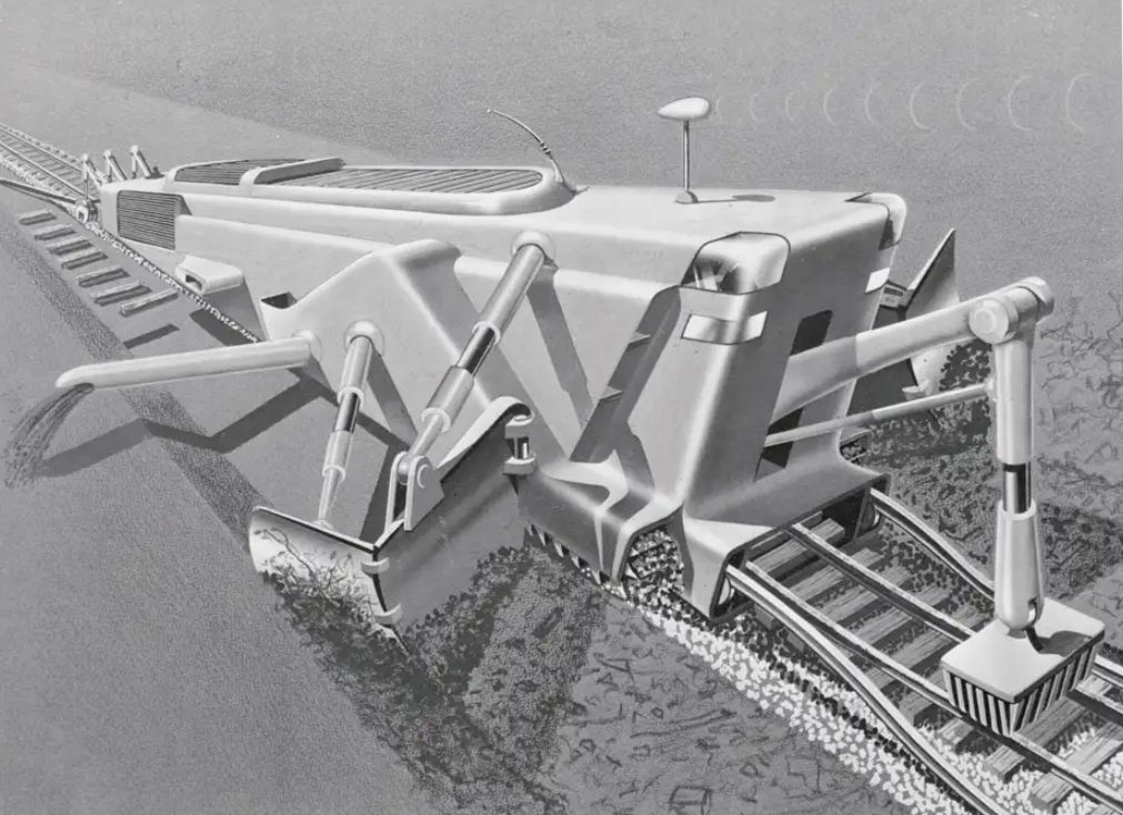 "Tüm inşaat ve onarım işlerini yapacak" 1975 tren-ray katmanı, büyük altyapı sürecinin bile otomasyon yoluyla hızlandıracaktı.