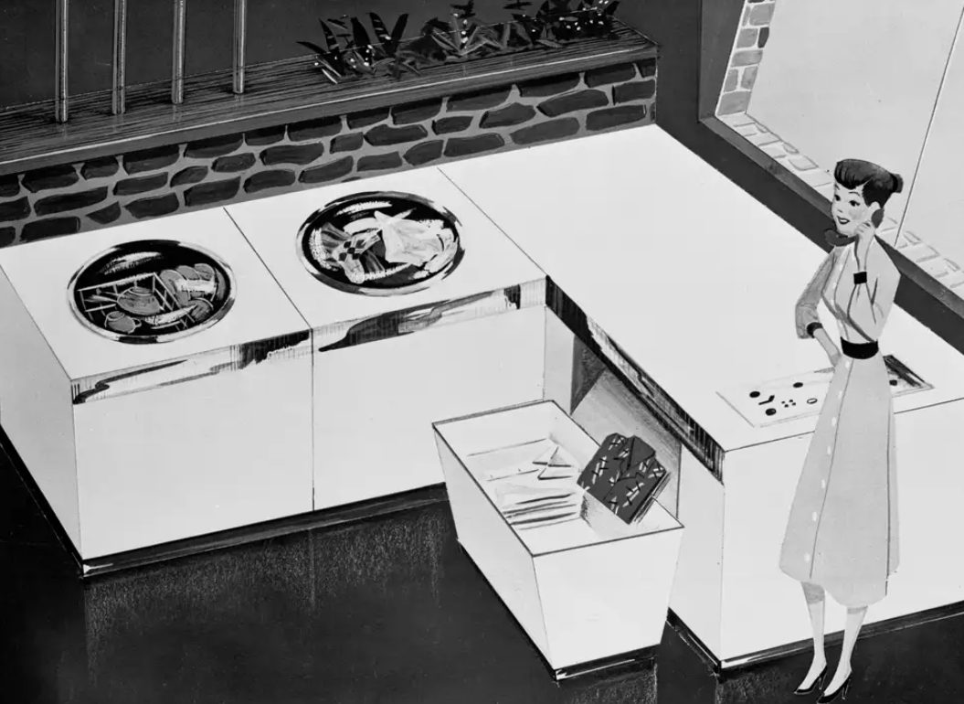 1975'te telefonla alışveriş yapan kadını gösteren bu fütürist tasarım, gerçekten de bulaşıkları, çamaşırları ve ihtiyaç duyulan diğer her şeyi bir düğmeye dokunarak yapma kolaylığı sağlıyordu.Çamaşırlar yıkanırken telefonla alışveriş yapabilmek günümüzde bize çok komik gelse de o günler için çok ekstrem bir durumdu.