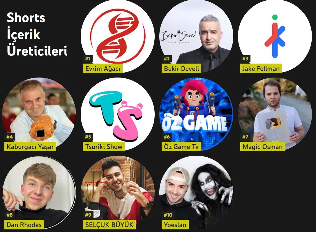 2021 YouTube Türkiye'de yılın en iyi Shorts içerik üreticileri