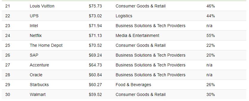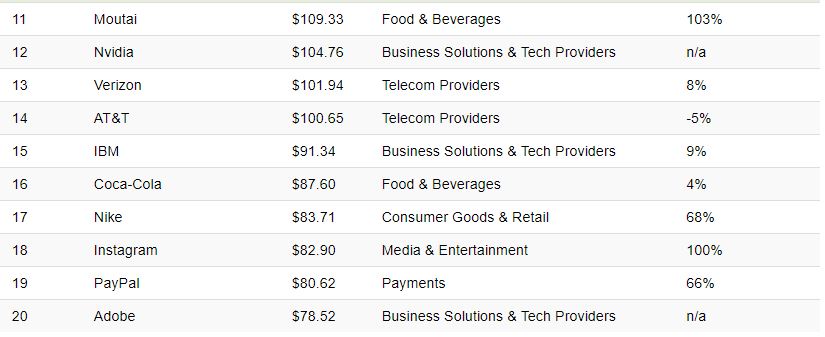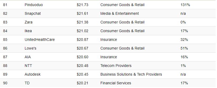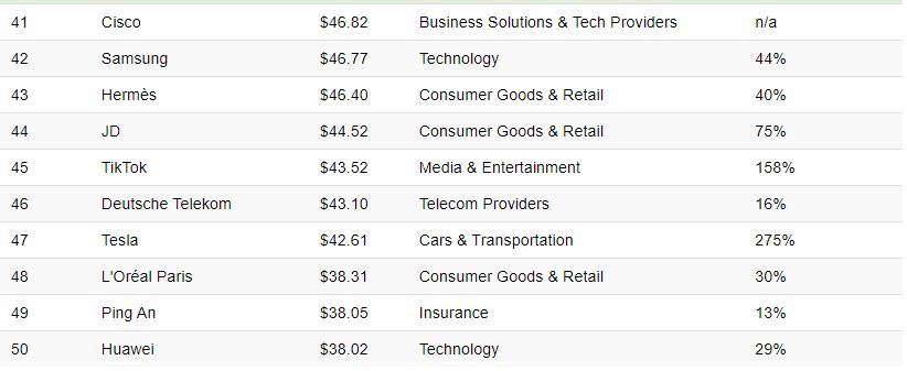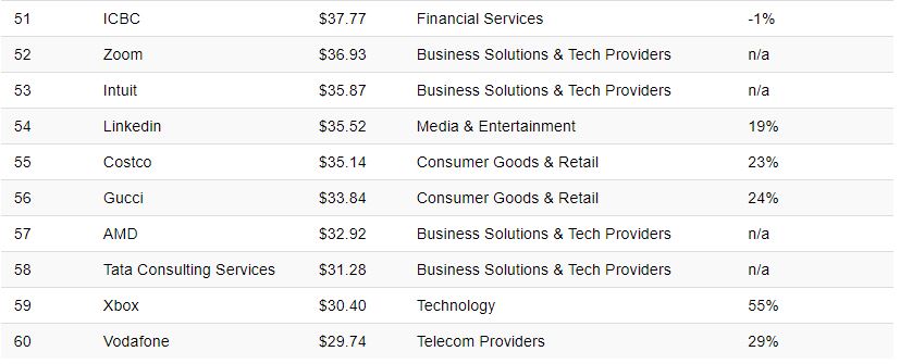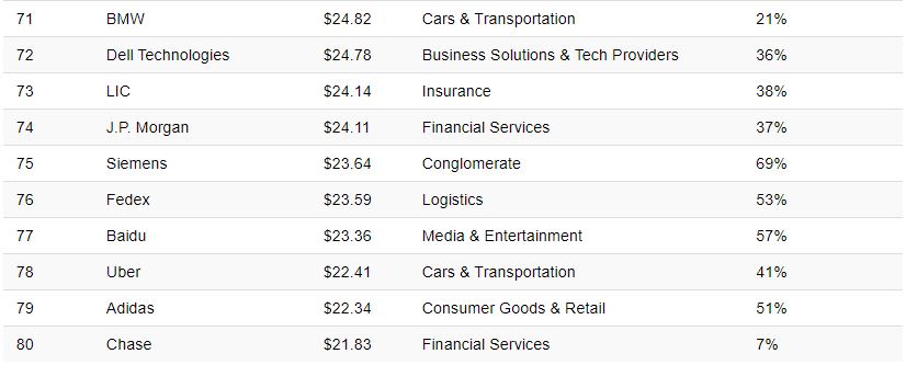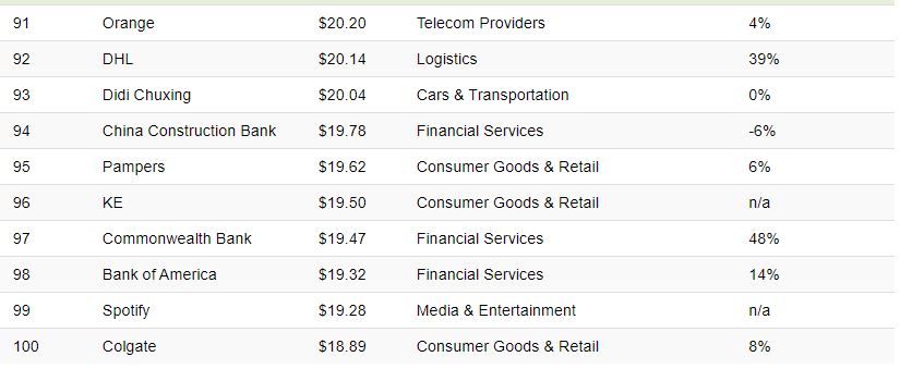 100 markanın olduğu bu listedeki dev şirkeler....Dünyanın en değerli markası listesindeki 100 markanın toplam geliri 2021 yılında tam