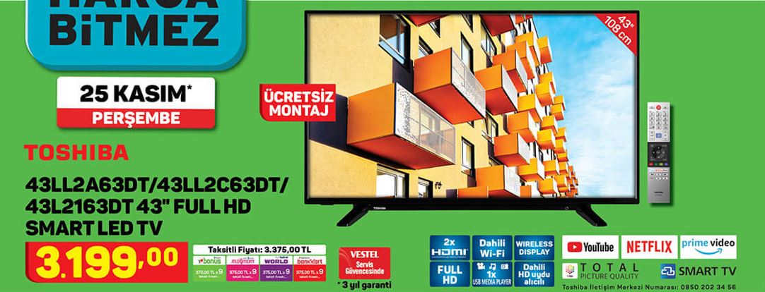 TOSHIBA 43LL2A63DT / 43LL2C63DT / 43L2163DT - 43 inç FULL HD SMART LED TV