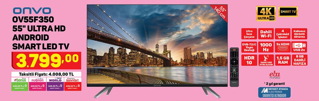 ONVO OV55F350 55 inç ULTRA HD ANDROID SMART LED TV