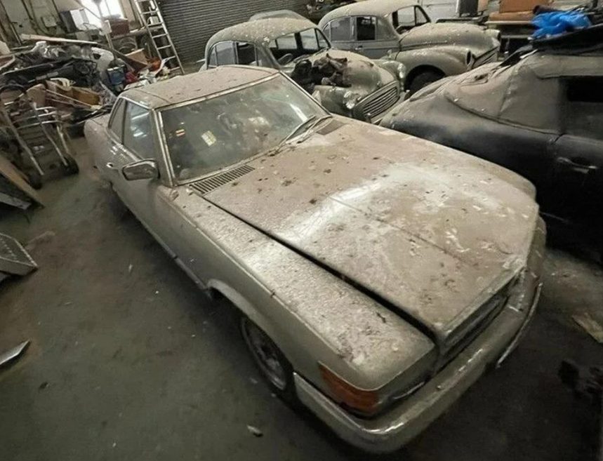 Freddie Atkins, buldukları efsane araçların ve ahırın görüntülerini paylaştı. Ahır içerisinde Mercedes R107 ve SL 280 gibi nadir modeller bulunuyor.