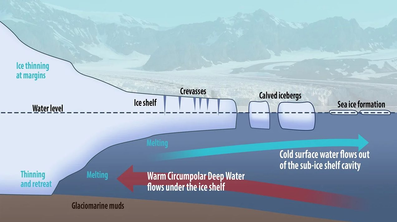 Thwaites Buzulu hızla erimeye devam ediyor. Kıyamet Günü Buzulu'nun erimesinin en büyük nedeni küresel ısınma. Fakat bu hızlı erimenin bir nedeni daha ortaya çıktı.Türkiye yüz ölçümünün 3'te 1'i büyüklüğünde olan Thwaites Buzulu'nun sadece iklim değişikliğinden erimediği ortaya çıktı. Dünya'nın kendi ısısı da bu hızlı erimeyi tetikliyor.