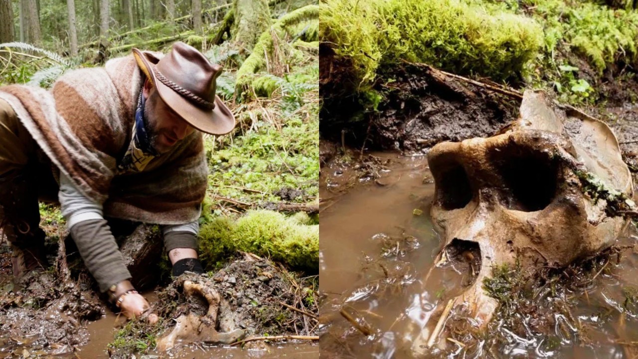 Paylaştığı videoda maceracı Coyote, bir çamur birikintisinden hayvan kalıntılarına benzeyen bir şey çıkarırken görüldü.