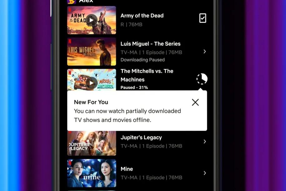 Netflix, Android kullanıcıları için kısmen indirilmiş içerikleri görüntülemelerine izin veren yeni bir özellik sunuyor. Umuyoruz ki bu özellik son dakikalarda indirmeye alınan bölümlerin inmemesi sonu...