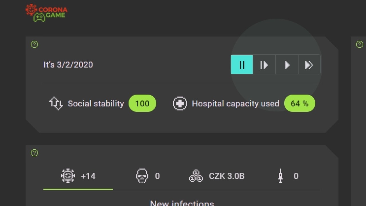 COVID-19 pandemisi sonrasında salgın konulu oyunların sayısı her geçen gün artıyor. Son olarak ise direkt olarak bir COVID-19 pandemisi yönetebileceğiniz bir tarayıcı oyunu olan CoronaGame çıktı. Oyunda, oyuncuların pandemi olan bir ülkeyi nasıl yönettiği test ediliyor.CoronaGame (orijinal adıyla Korona Hra), Çekya'da yaşayan matematikçi Michael Benes'in de içinde bulunduğu bir grup insan tarafından tasarlanmış. Çekya'yı andıran ve 10 milyon nüfusu olan bir ülkeyi yönettiğimiz oyun, tarayıcılar üzerinden oynanabiliyor. Amaç, çeşitli kriterleri belirleyerek ülkeyi COVID-19 pandemisinden olabildiğince az hasarla atlatmak.