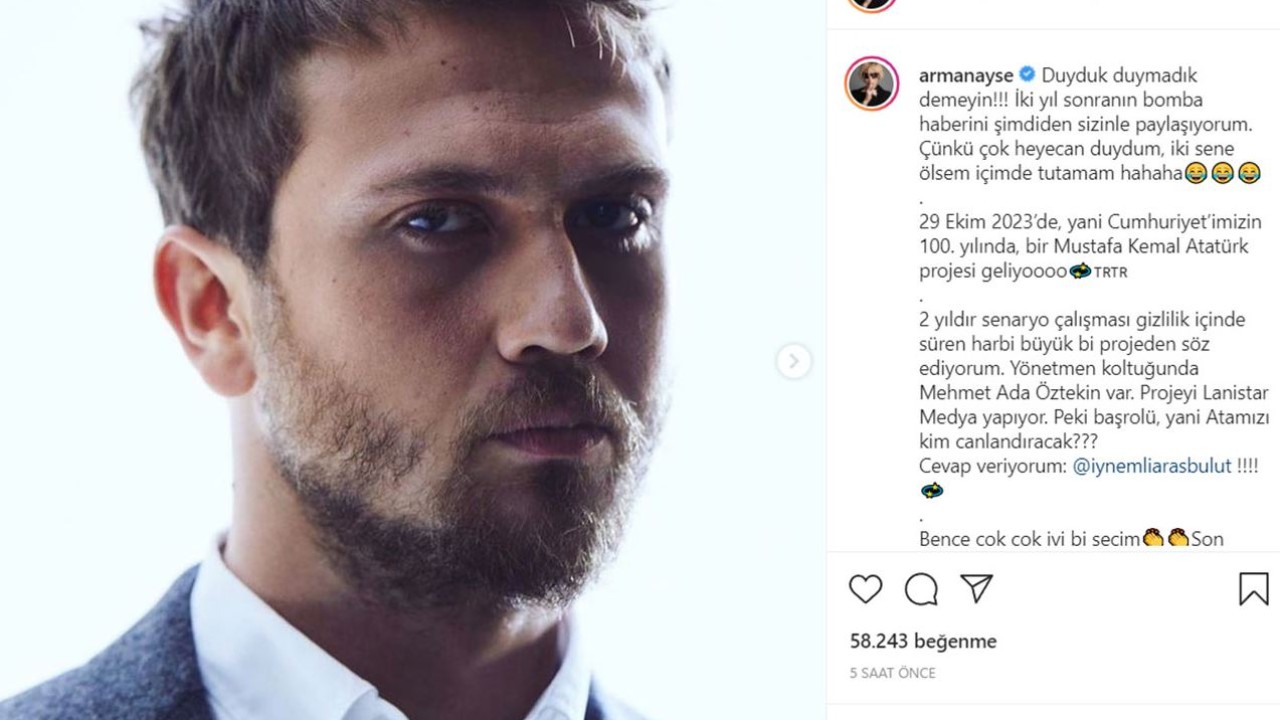 Mustafa Kemal Atatürk projesi yayınlanacak. Senaryonun tam 2 yıldır gizlilik içerisinde hazırlandığını da söyleyen Arman, bu büyük projede Atatürk'ü kimin canlandıracağını da açıkladı.