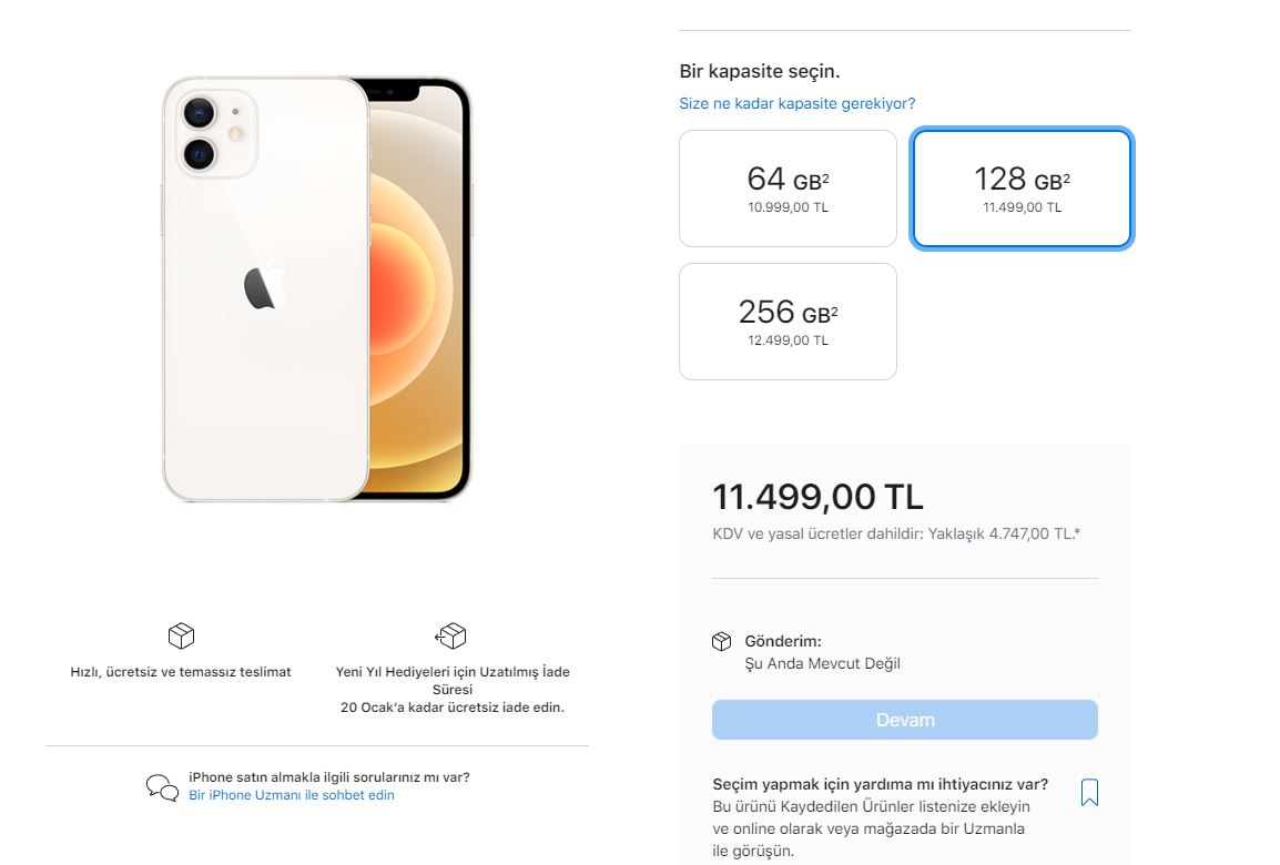 Apple sitesindeki ürünlerin hangi seçeneği olursa olsun şu anda alışveriş yapmak isterseniz ürünleri sepetinize ekleyemiyorsunuz ve "Şu Anda Mevcut Değil" uyarısıyla karşılaşıyorsunuz.Satışların ne zaman yeniden başlayacağı bilinmiyor. Yabancı basında da Apple'ın Türkiye'deki ekonomik durum sebebiyle satışlarını durdurduğunu manşetlerine taşıdı.