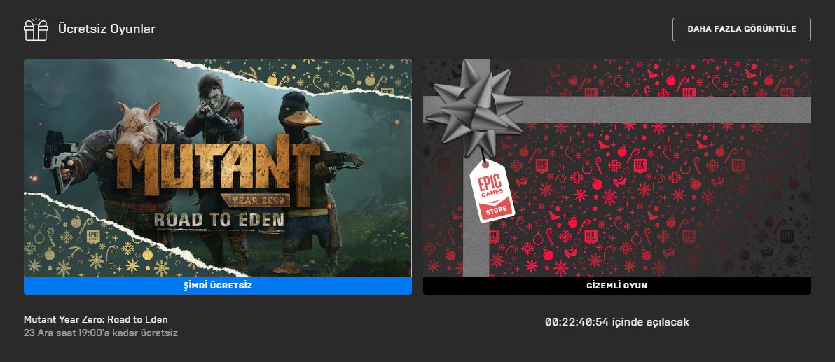 16 Aralık-30 Aralık tarihleri boyunca her gün bir ücretsiz oyun dağıtacağını açıklamıştı. Bugün yedinci gündeyiz ve günün ücretsiz oyunu açıklandı: Mutant Year Zero: Road to Eden