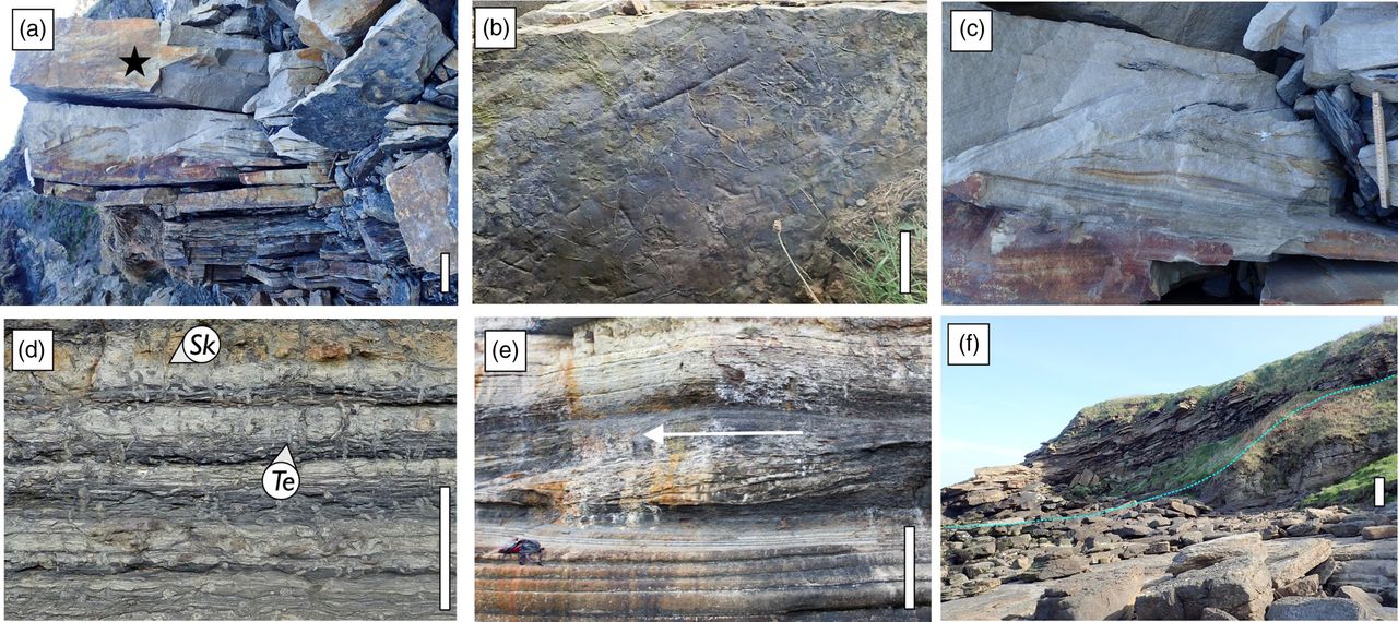 Kaynak: Neil Davies[/caption]Araştırma ekibi, fosilin hayvanın kendisi değil, exuvium adı verilen tüylü bir kabuk olduğunu düşünüyor. Yani bu fosilden bilindiği üzere hayvanın büyüklüğü bile kırkayakların sonunda büyüdüğü en büyük boy olmayabilir .Araştırmacılar, içinde bulunduğu fosil ve taşın konumuna dayanarak, dış iskeletin bir nehir kanalında olduğunu ve kumlu tortu ile doldurulduğunu ve onu koruduğunu düşünüyorlar. Dış iskelet, aynı zamana tarihlenen tetrapod izlerinin yakınında bulundu, bu da dev omurgasızların omurgalılarla bir arada yaşadığını gösteriyor.