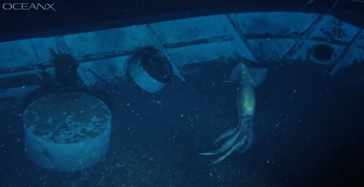 Deniz biyologlarından oluşan bir ekip, batık bir gemiyi incelerken dev bir