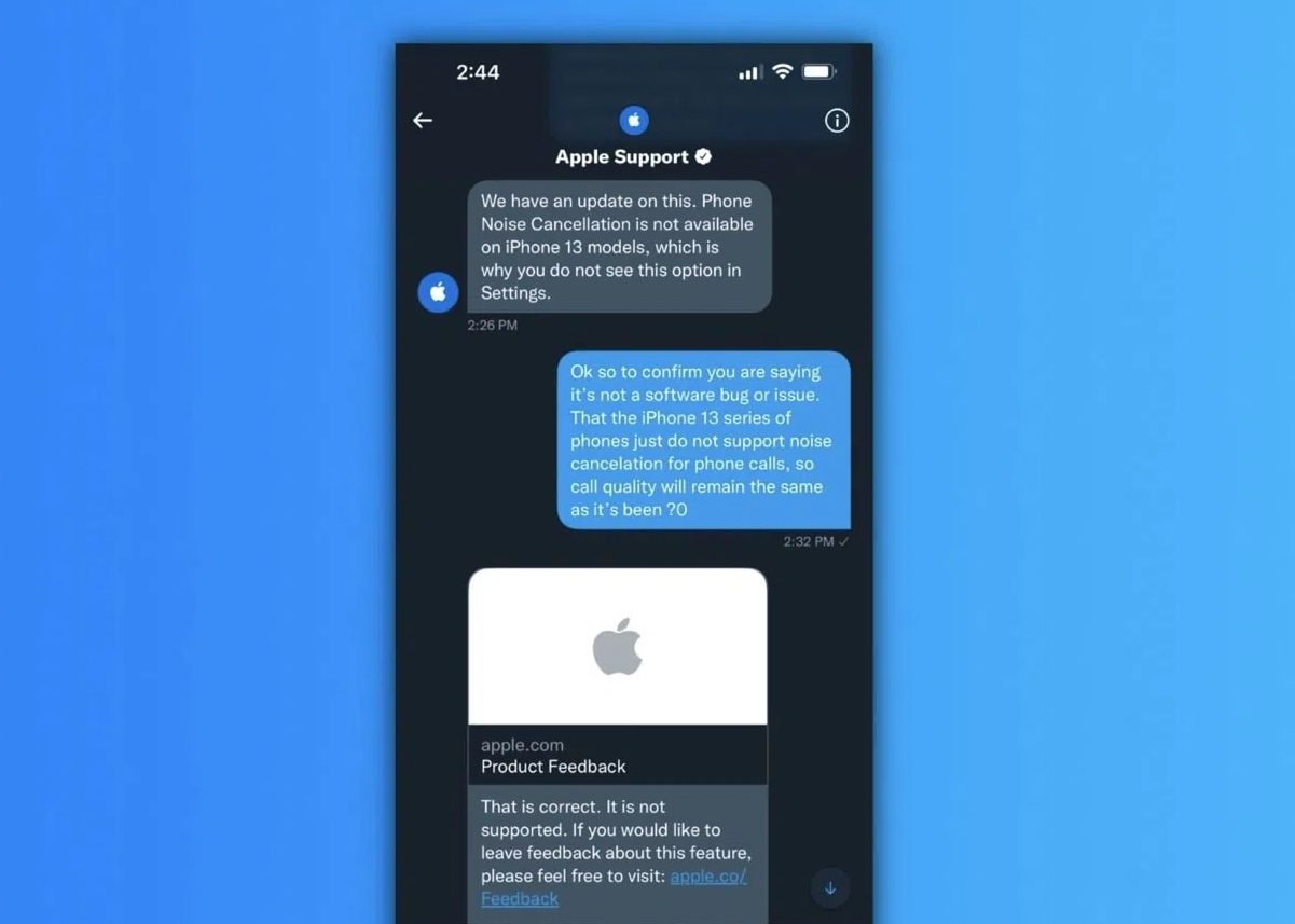 "iPhone 13 modellerinde telefonda gürültü engelleme özelliği bulunmadığından, Ayarlar'da bu seçeneği görmüyorsunuz" şeklinde yanıt verdi.Kullanıcılardan oldukça tepki alan bu karar, yüksek fiyatla satılan üst sınıf bir telefondan böyle temel bir özelliğin kaldırılmasına sinirli.