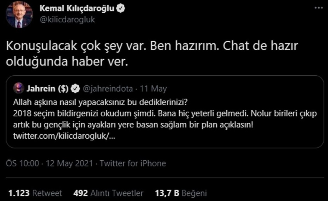 "Biliyorum siz de uyumuyorsunuz gençler, gelin biraz dertleşelim..." notuyla paylaştığı videoyu Jahrein eleştirmişti. Eleştiriye yanıt veren Kılıçdaroğlu