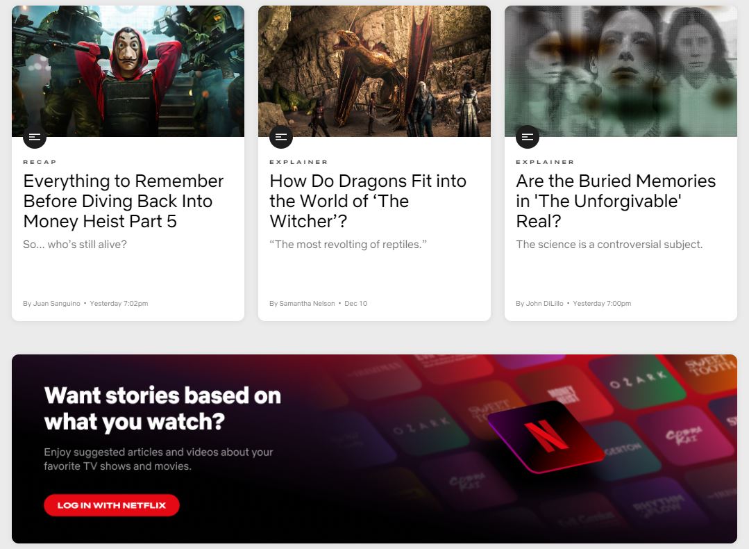 Netflix, izleyicilerine haberler, röportajlar, kamera arkası videoları ve çok daha fazlasını sağlamak için yeni bir web sitesi olan