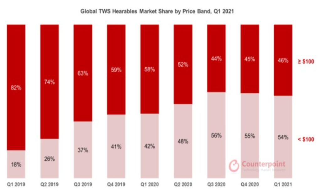 100 doların altındaki segmente, Xiaomi gibi birçok markanın ürün çeşitliliği gibi sebepler dolayısıyla, payları düştü. Tüm bunlara rağmen pandemi birçok sektörü olumsuz etkilese de kablosuz kulaklık üreten firmaları pek etkilemediği görülüyor. Siz bu araştırma ile ilgili ne düşünüyorsunuz? Görüşlerinizi