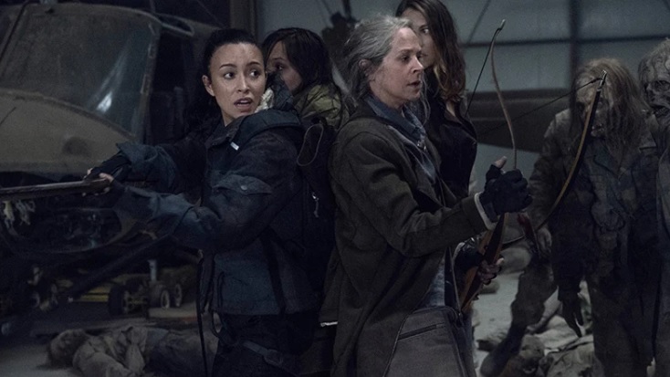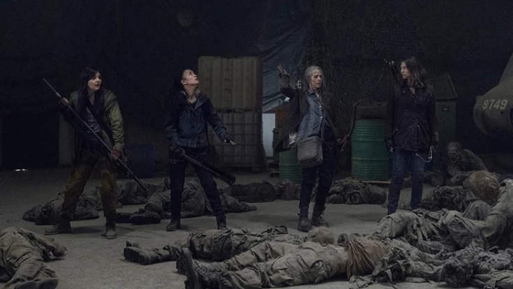 Twitter hesabından paylaştığı görsellerde, dizinin sevilen kadın karakterlerini ve herkesin sempati duyduğu Negan'ı zombi avlarken görüyoruz. Ayrıca Carol, Maggie, Rosita ve Lydia'yı bir hangarda, etrafları askeri üniformalı aylaklar ile birlikte görüyoruz. Bu görüntü, 10. sezonda Daryl'ın ormanda asker üniformalı zombilerle dövüşmesi ile bağlantılı bir durum olabilir.