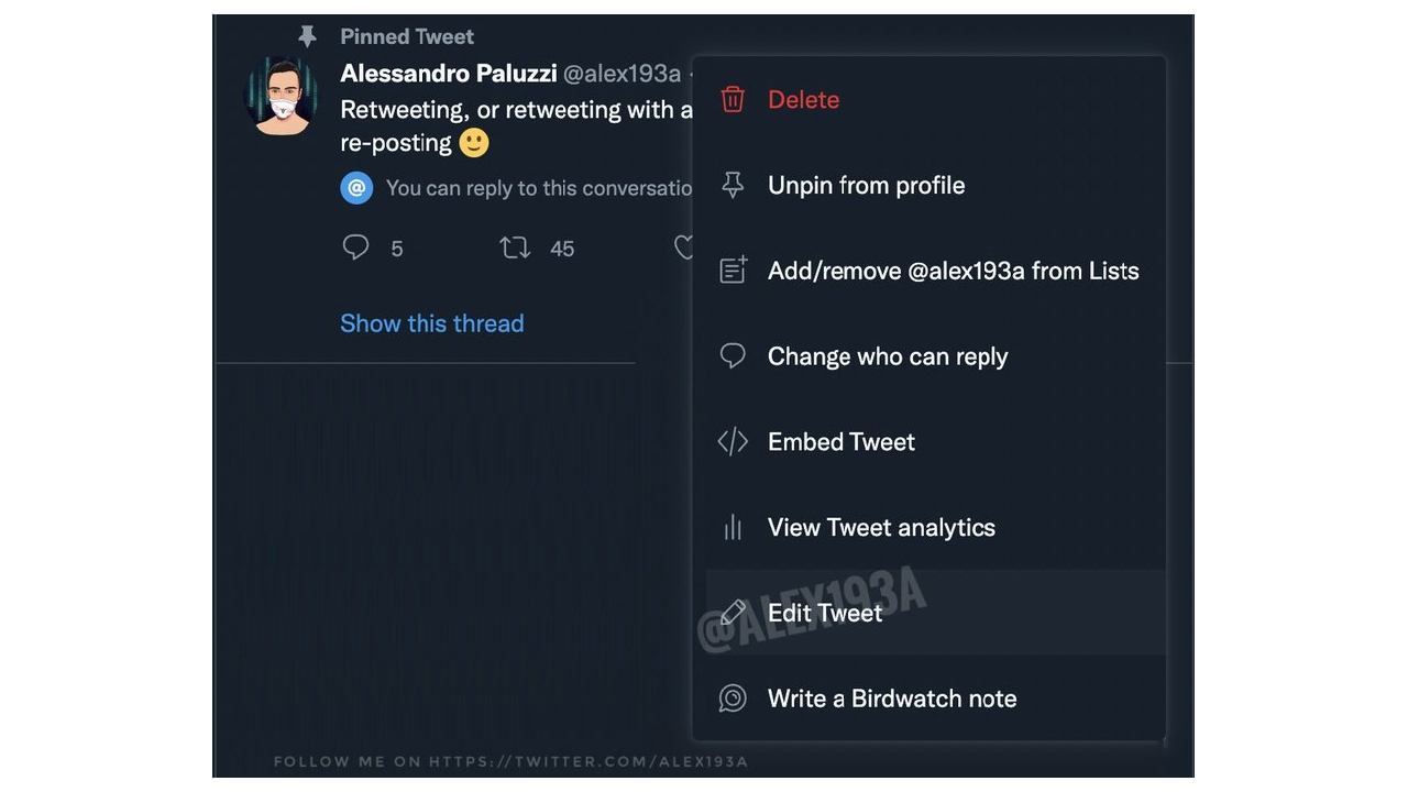 Tersine mühendislik yapan Jane Machun Wong'un edindiği bilgilere göre, bu özellik geliştirilme aşamasında ve oldukça kullanışlı olacak. Henüz Twitter bu konuyla ilgili bir açıklama yapmadı. Bunun nedeni de şirketin yoğun olarak Elon Musk konusuyla (platformu satın almak istemesi) ilgileniyor olması.Sızıntılarıyla ünlü tersine mühendislik yapan başka bir isim olan Alessandro Paluzzi, henüz bahsi geçen şekilde bir seçeneğin olmadığını belirtti ve bir ekran görüntüsü paylaştı.