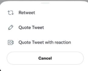 Özelliğin ismi görsellerde de görebileceğiniz gibi "Quote Tweet witch reaction" (Tweeti reaksiyon ile alıntıla). iOS kullanıcılarının küçük bir bölümünde test edilmeye başlanan özellik sayesinde kullanıcılar tweetlere fotoğraf ve videolarla tepki verebiliyor.