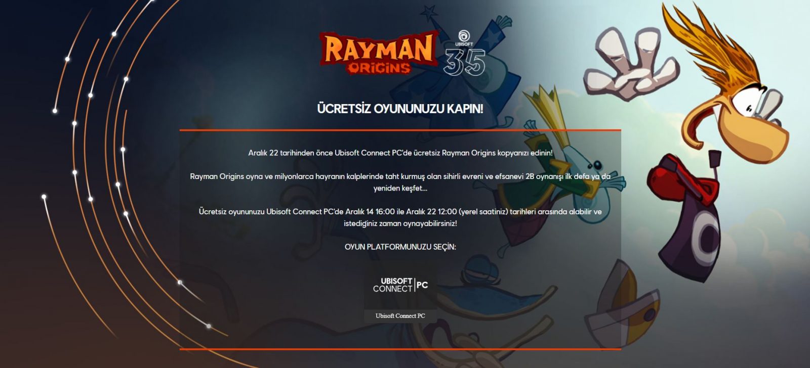 Ubisoft'un popüler oyun serilerinden olan Rayman'in 35. yılı şerefine Rayman Origins oyunu ücretsiz oldu.2012 yılında çıkan Rayman Origins, Rayman serisinin 35. yılı şerefine