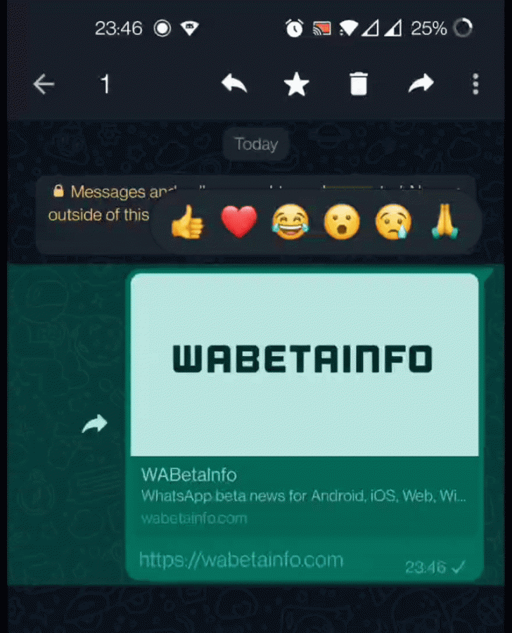 WhatsApp’ın daha önce bazı beta sürümlerinde görülen ve Facebook’taki gibi mesajlara emojilerle ‘tepki’ verebileceğimiz özelliği yine ortaya çıktı. Bazı beta kullanıcılarının kullanımına sunulan bu özellik 6 farklı emojiden biriyle mesajlara tepki vermemizi sağlıyor.
