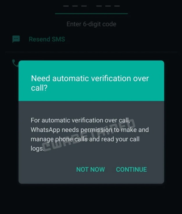 "2.21.11.7" olduğu tespit edildi. Bu fonksiyon WhatsApp'tan otomatik olarak doğrulama aramaları gerçekleştirebiliyor. Kullanıcı, bir sonraki aramayı işlemek için telefon numarasını girdikten sonra bir kod girmek veya seçtiği doğrulama yöntemini kullanmak zorunda kalmayacak. Ayrıca WhatsApp, her doğrulama işlemi sırasında farklı bir telefon numarası kullanacak ve böylece yeni doğrulama yöntemleri kullanma olasılığını ortadan kaldıracak.