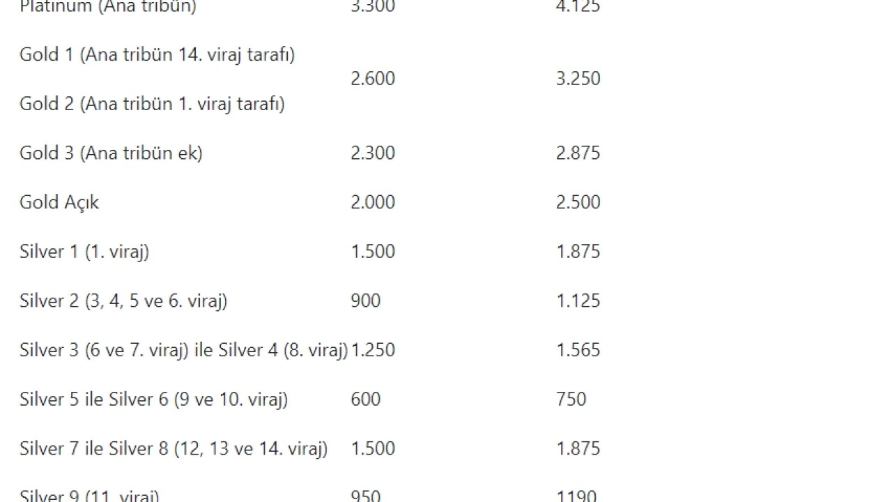 Formula 1 biletleri 12 Temmuz'da satışa çıkacak ve fiyatları belli oldu. İşte Formula 1 İstanbul GP bilet fiyatları: