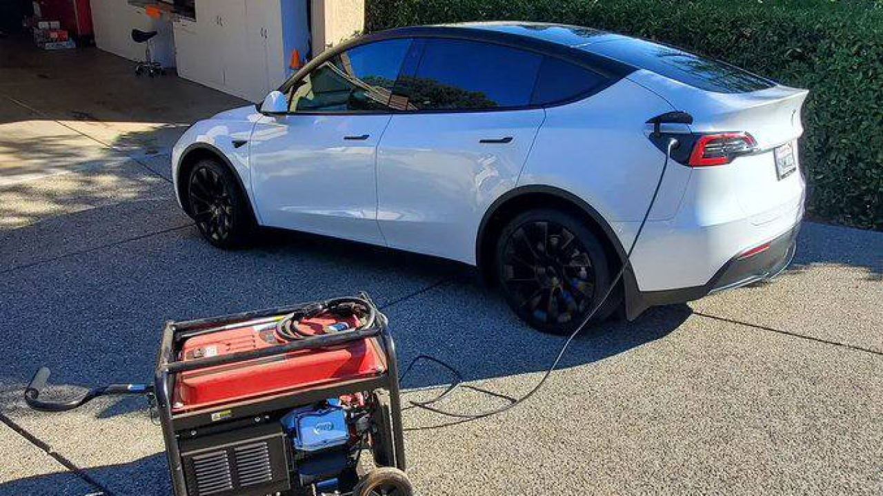 Twitter'da bir kullanıcı paylaştığı fotoğrafta, Tesla otomobilini bir jeneratör ile şarj etmeye çalışırkenki halini paylaştı.