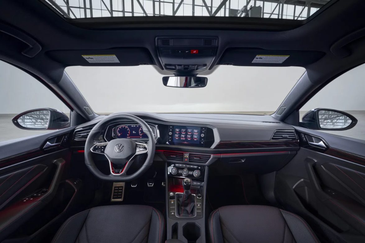 Aracın iç tasarımında ise 8 inç dijital gösterge ekranı giriş seviyesinden itibaren standart olarak geliyor. En üst GLI versiyonunda ise ekranın boyutu 10 inç. Giriş seviyesinde kumaş koltuklar kullanılmışken, üst seviyelerde suni deri ya da deri koltuklar mevcut. En üst seviye GLI versiyonunda ise delikli deri koltuklar ve kırmızı detaylar kullanılmış.