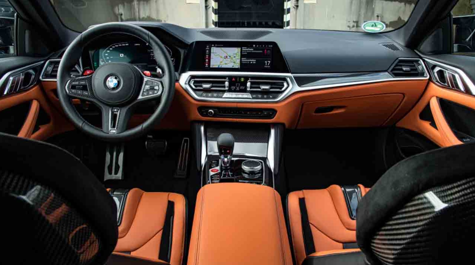 Borusan Otomotiv aracılığıyla Türkiye'ye getirilen BMW M4 Competition Coupe, iç tasarımıyla BMW'nin geleneksel yapısını gözler önüne seriyor. Bu durumda standartlaştırılmış multimedya ekranının altında bulunan dijital klima çok popüler ancak sürüş modunu değiştirebilen