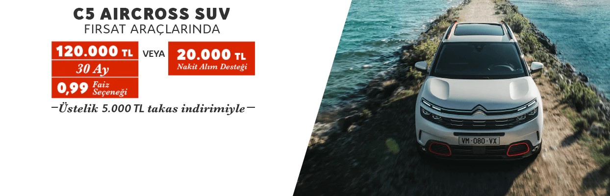 &feature=emb_logo&ab_channel=Citro%C3%ABnT%C3%BCrkiyeCİtroen, internet sitesinden yaptığı açıklamayla birlikte, 2020’nin fırsat araçlarını duyurdu. Citroen göz alıcı SUV modeli C5 Aircross’a 303 bin liraya sahip olabilirsiniz. Yalnız, acele edin. Bu fiyatlar 2021 ile birlikte ortadan kalkıyor.Normal dönemdeki fiyatı 330 bin TL olan C5 Aircross’un giriş seviyesindeki modelinde, 27 bin TL’lik bir indirim yapılmış. Stok eritme amaçlı yapılan bu indirim sayesinde hayalinizdeki araca daha az para ödeyerek sahip olabilmeniz mümkün. Üstelik 27 bin TL’de fazladan cebinize kalacak. 27 bin TL ile içinde bulunduğumuz şu zor günleri geride bıraktığımzıda krallar gibi bir tatil yapabilirsiniz, bırakın tatili evin bütün eşyalarını bile değiştirebilirsiniz. Bu bakımdan Citroen’in yapmış olduğu indirim, yabana atılmayacak cinsten.Live donanımlı 1.2 Puretech tam otomatik vitesli modelin fiyatının 303 bin TL olduğunu belirterek, diğer fırsat araçlarına bakalım. C5’in donanım seviyesi arttığında fiyatı da haliyle artış gösteriyor. 1.6 PureTech tam otomatik vitesli model, Shine donanım seviyesinde 403 bin 500 TL. Eğer bu modeli nakit indiriminden yararlanarak almak isterseniz, ödeyeceğiniz tutar 18 bin TL azalarak 383 bin 500 TL seviyesine geriliyor. Aynı motor seçeneğinde Shine Bold donanım seviyesindeki aracın kampanyalı fiyatı 412 bin TL. Nakit indirimi sayesinde bu modele 20 bin TL indirimle 392 bin TL’ye sahip olabilmeniz mümkün.