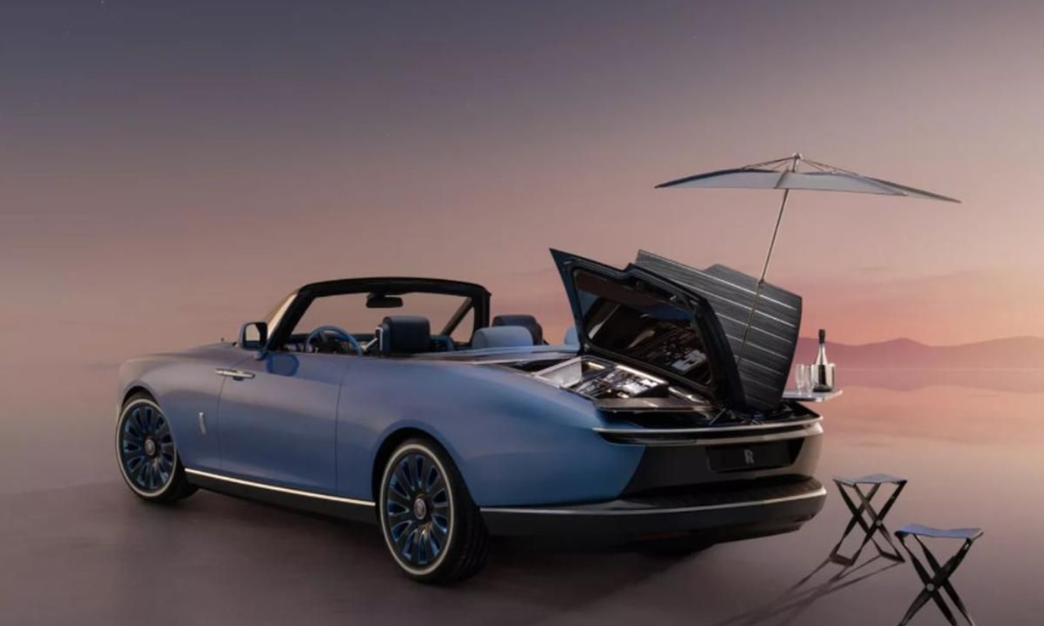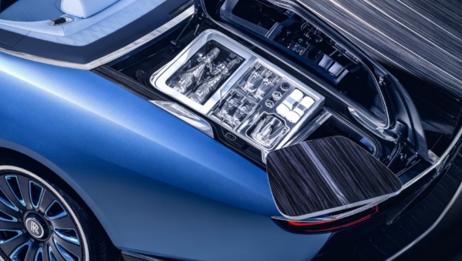 kendiliğinden açılan bir güneş şemsiyesi yer alıyor. Rolls-Royce Boat Tail’ın ünlü çiftin düzenli olarak gittiği ve açık havada piknik yapmaktan keyif aldığı