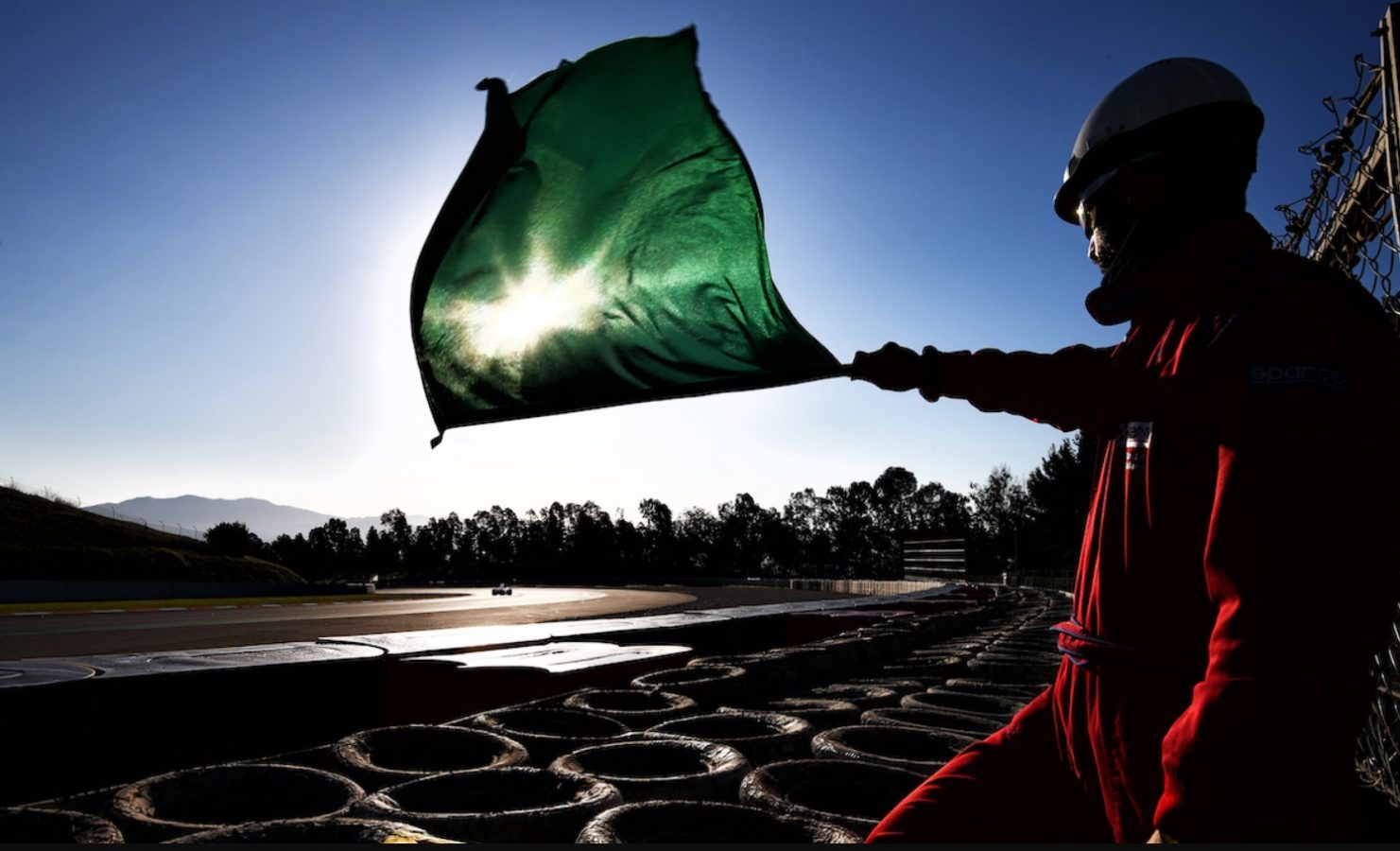 Bu işaret herhangi bir problem olmadığını gösterir. Sarı bayrak altında geçilen tehlikeli kısımlar bittiğinde sallanarak yarışın tekrar başladığının sinyalini verecektir.