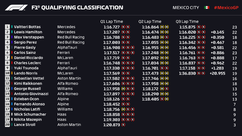 Formula 1'de sezonun 18. yarışı Meksika Grand Prix'ine, Mercedes'in Fin pilotu Valtteri Bottas pole pozisyonunda başlayacak. Lewis Hamilton ise onun hemen yanına ikinci sırada olacak....