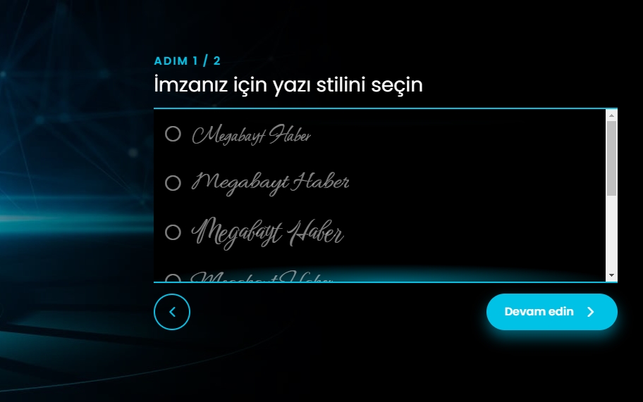 4- Hesabınızı açtıktan sonra isminizin ve soy isiminizin imzanızda nasıl gözükeceğine yönelik bir font seçimi yapıyoruz. Buradan dilediğiniz fontu seçin.