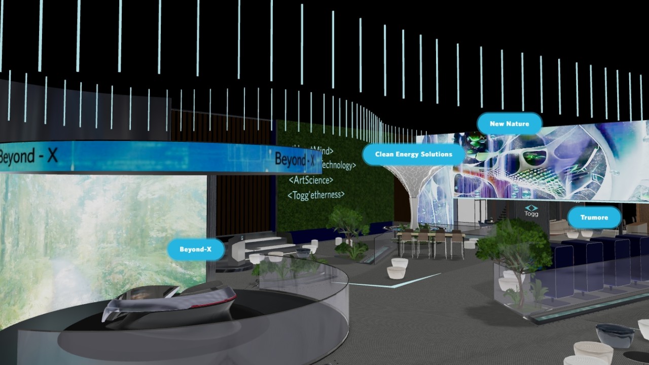 Togg'un standı 4 bölüme ayrılmış durumda. Bunlar: Beyond-X, New Nature, Clean Energy Solutions ve Trumore olarak sıralanıyor.