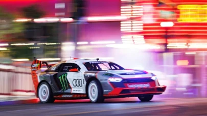Ken Block bu kez türünün tek örneği elektrikli Audi ile Gymkhana şovunu yaptı - VİDEO