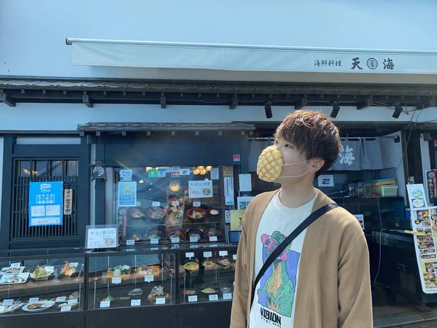 “melonpan” (kavun ekmek) adı verilen çörekten üretilen maske sosyal medyada yoğun ilgi gördü.