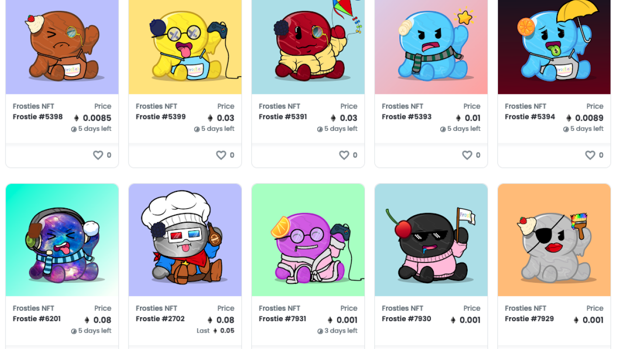 "Frosties" adlı çizgi film benzeri karakterlere dayanan, NFT'ler satarak yaklaşık 1, 1 milyon dolar kazandıkları iddia ediliyor.