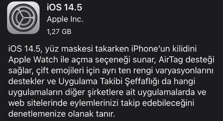 "uygulama izleme şeffaflığı" özelliğini beraberinde getiriyor. Bu nedenle, uygulamanın kullanıcıları izlemesini sağlamak için izin gerekli. Öte yandan Apple, iOS 14.5.1 güncellemesini yayınladığında çok uzun süre beklemedi ancak hatayı düzeltti. iOS 14.5.1 güncellemesi Apple'dan iOS 14.5 sürümünü çıkarmasına ön ayak oldu.