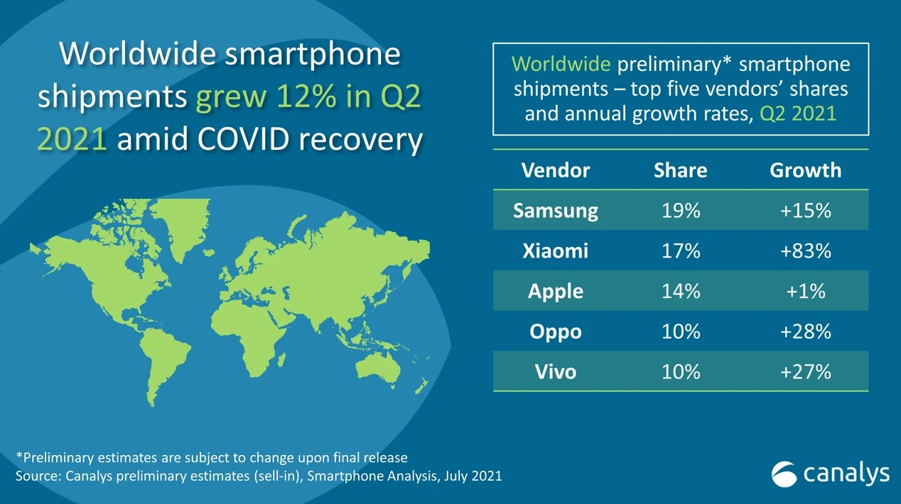 Analiz firması Canalys, 2021'in ilk üç ayı için küresel akıllı telefon sevkiyatlarını gösteren bir rapor yayınladı. Raporda Xiaomi, Apple'ı geride bıraktı.Akıllı telefon dünyasında yıllardır Apple ve Samsung akla gelen ilk iki marka. Ancak Çinli teknoloji devi Xiaomi artık bu rekabete ortak oldu. Hatta Apple'ı geride bile bıraktı.Analiz firması Canalys'in yayınladığı son raporda2021 ikinci çeyrek rakamlarına göre Xiaomi, küresel akıllı telefon sevkiyatlarında Cupertinolu dev Apple'ı geçerek 2. sıraya oturdu. Zirvedeyse Güney Kore merkezli bir başka teknoloji devi Samsung oturuyor.