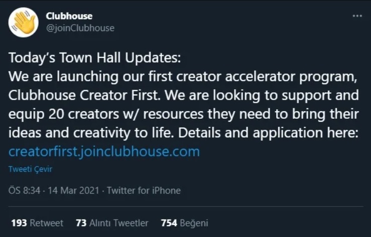 Clubhouse piyasaya çıktığı günden bu yana tüm kullanıcıların ilgisini çekti ve yeni bir çağ başlattı. Gündemden düşmeyen platforma bir yenilik getirildi. Kullanıcılar artık Clubhouse üzerinden para kazanabilecek. Ancak şu anda sadece 20 içerik oluşturucu uygulama üstünden para kazanabiliyor.Geçtiğimiz aylarda iOS ekosistemi için yayınlanan sesli sohbet uygulaması Clubhouse, yayın gündeminin ana içeriklerinden biri haline geldi ve kullanıcılar için yeni bir dönem başlattı. Geliştirme ekibinin son açıklamasına göre, Clubhouse'ta artık kullanıcılar para kazanabilecek.Clubhouse'un yeni kararı pek şaşırtıcı değil. Sonuçta, her sosyal ağ, insanların para kazanmasını sağlamak için çeşitli fırsatlar sunuyor ve kullanıcılar bundan en iyi şekilde yararlanıyor. Şimdi bu uygulama Clubhouse'ta uygulanacak. Ancak şu an için dileyen herkes, Clubhouse üzerinden para kazanamayacak.