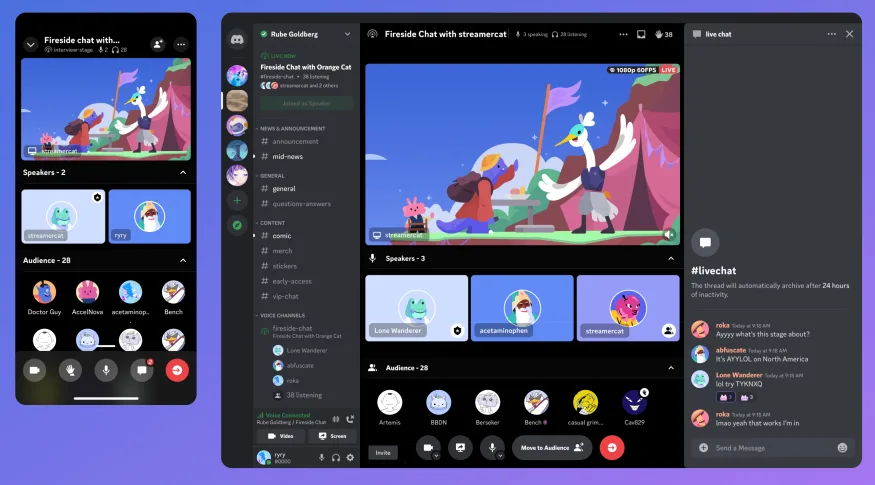 Discord, bir sohbeti daha geniş bir kitleye yayınlayan Twitter Spaces benzeri özelliği olan Stage Channels'ı geliştiriyor. Stage Channels, neredeyse iki yıl önce çıkış yapmıştı. Artık yeni özellik Discord'a video beslemeleri, ekran paylaşımı ve metin sohbeti ekliyor.