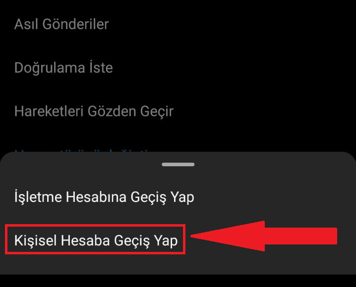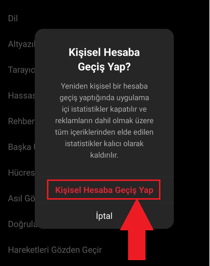 - Açılan pencerede “Kişisel Hesaba Geçiş Yap” seçeneğine dokunun.