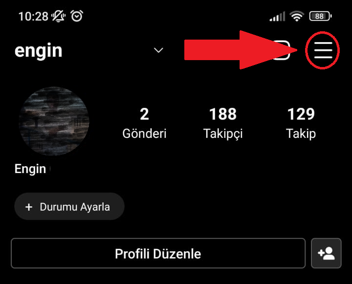 - Uygulamanızı başlatın. Profil sayfanıza gelin ve sağ üst köşede bulunan üç çizgiye dokunun.