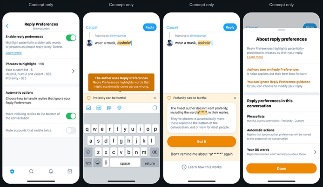 Son olarak ise beklenilen özellikler arasında kullanıcıların görmemeyi tercih ettiği belirli kelimeleri seçmelerine sağlayan yanıtları filtrelemek için bir seçenek gündemde. Bu özelliğe göre paylaşım yaptığınız zaman cevap verilmesini istemediğiniz sözcük ve söz öbeklerini engelleyebileceksiniz. Sonrasında ise Twitter, karşıdaki kullanıcıya seçtiği kelimenin, o kişinin tercihine aykırı olduğu şeklinde bir bildiri gönderecek. Bu özelliklerin gelip gelmeyeceği şimdilik belli değil. Siz söz konusu bu özellikler ile ilgili ne düşünüyorsunuz? Görüşlerinizi