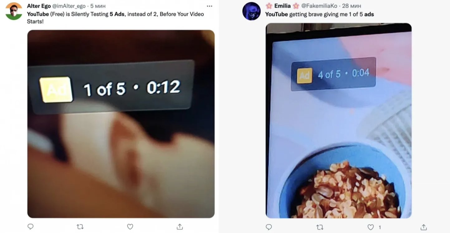 YouTube’da daha önce reklamları belli bir süre izledikten sonra ‘Reklamı Atla’ butonu ile geçerbiliyorduk. Artık bu reklamları atlayamayacaksınız ve videodan önce 5 reklamı da izlemeniz gerekecek. Her reklamın süresi 6 saniye olacak ve toplamda 30 saniyelik video izlemiş olacaksınız. Fakat bu 5 reklamlı sistemin test edildiği ülkelerden reklam sürelerinin 30 saniyeyi geçtiğine dair kullanıcı şikayetleri de geliyor. Aşağıdaki bir görselde de görebileceğiniz gibi 12 saniyelik bir reklam kullanıcının karşısına çıkmış.