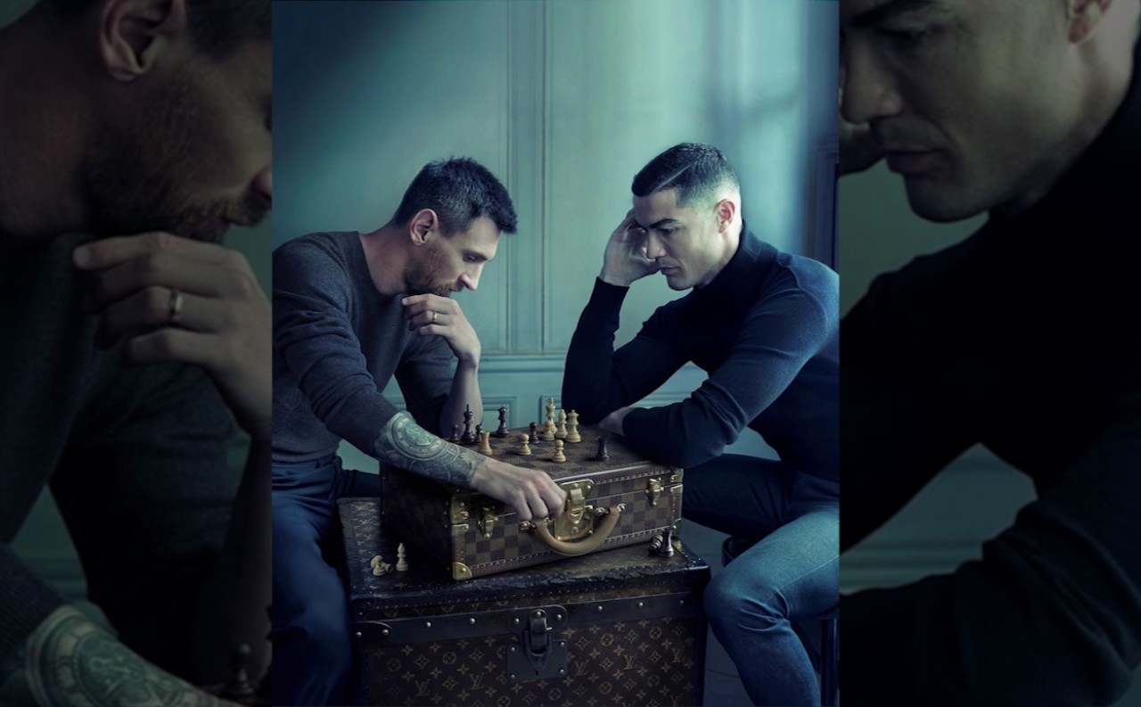 Louis Vuitton isimli bir markanın projesi olan fotoğfta, önündeki satranç masasına dikkatlice bakan iki efsane futbolcuyu görüyoruz. Bu satranç masasının detayında ise oldukça önemli bir mesaj var.